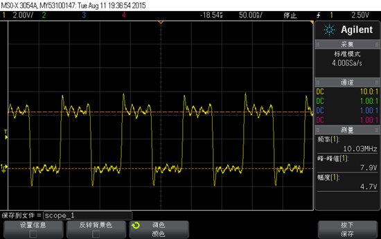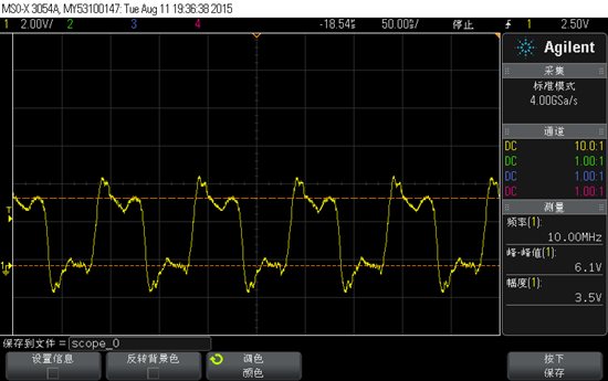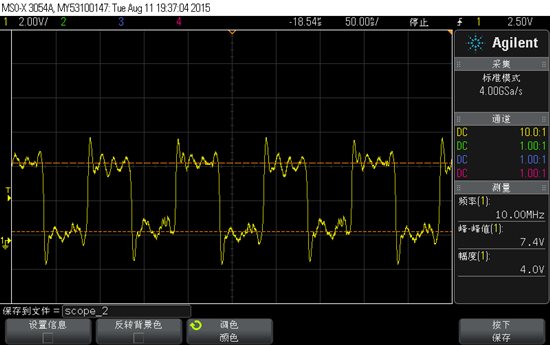 我用了ADI一款ADG3304进行电平转换,通过排线接到另一端,然后用sn74ahc14施密特触发器进行整形,发现波形没有改善,依旧有振铃出现。超过10MHz后,波形很差