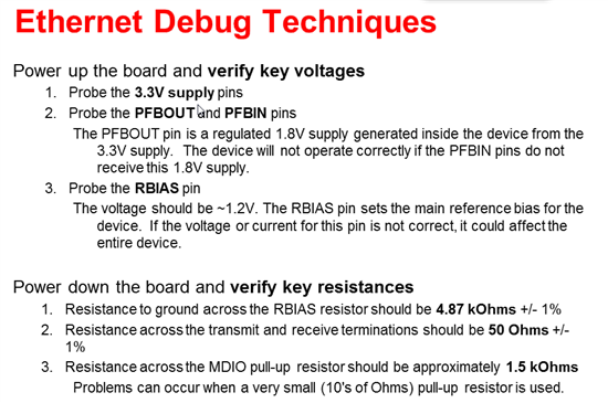 1. 如果能用MDIO读出PHY的寄存器,建议优先比较正常情况和无法链接情况下状态寄存器的值有什么区别。