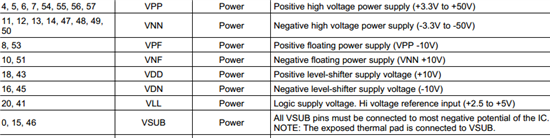 LM96550是一个脉冲发生器,手册管脚定义里面POWER部分需要用到好多种电源