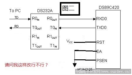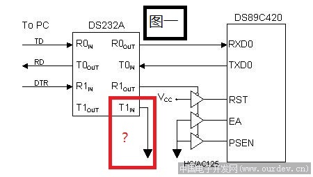 你好,我有块DS89C450单片机,想做个下载器,从官网找到了电路图,如图一,不过看不懂,请大家帮帮忙,谢谢啦。
