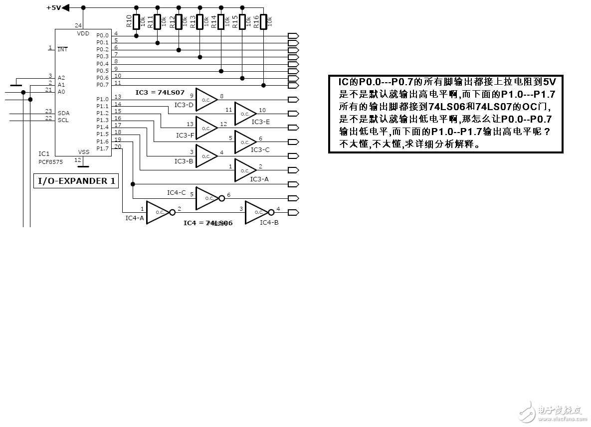 而P1.0---P1.7都输出低电平,因为都连接到OC 门。