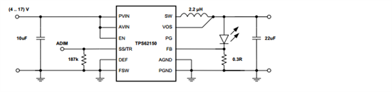 1、使用TPS61169驱动1个LED,输入电压3.8V,要求输出电流25MA至500MA可调,目前电流在200至600MA区间内可调,电流降不下来,求解问题出在哪里!LED额定3V/350MA;