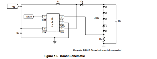 2、使用TPS61169驱动4个串联LED,输入电压3.8V,要求输出电流25MA至500MA可调;目前电流在20MA至180MA区间内可调,电压在13V-14V,芯片发热厉害,求解问题出在哪里!LED额定3V/350MA;