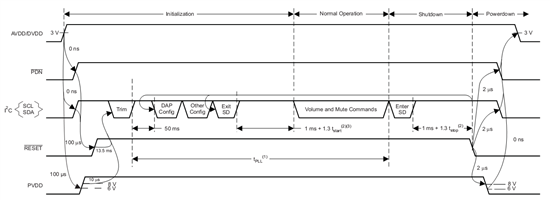 另外,jacky, 功放的上电时序是到底是怎么样的呢?因为我看将PVDD先上电,与PVDD后上电现在出来的情况都差不多。