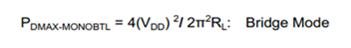 In Mono BTL mode, the power dissipation can be calculated as follow formula, but I'd say it’s only suitable for calculating the maximum value: