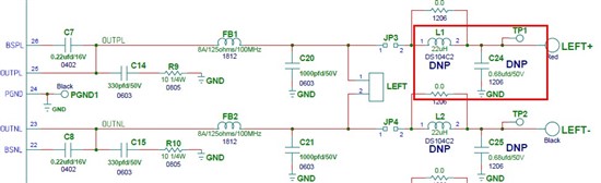 对就到EVM板上的滤波器,最重要的是后级的22uH电感与0.68uF电容组成的低通。同时选用电感的质量,饱和电流等也很重要。