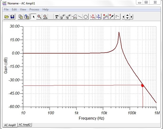 用22uF电感与0.68uF电容的一阶LC滤波器,其幅频响应在300K左右大约衰减了不到40dB,也就是1/100.