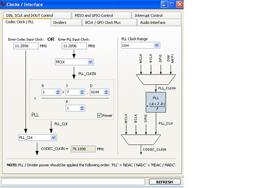 AIC3204_rset( 4, 0x03 ); // PLL setting: PLLCLK <- MCLK, CODEC_CLKIN <-PLL CLK
