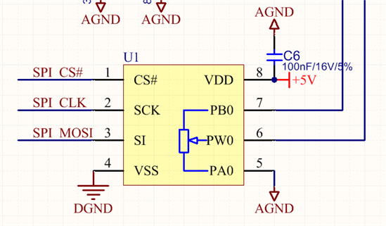 用机械式的电位器是没问题的,我想实现数控,但问题是数字电位器接在这里控制的时候会输出拉链声(排除SPI干扰)。