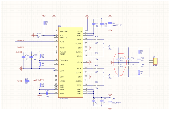 功放输出滤波电感发烫(TPA3116 slave模式)