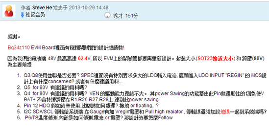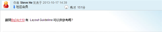 具体问题:社区会员Steve He在2013年10月17日,在电池管理板块针对TI的充电管理芯片Bq34z110提出了相关的疑问,請問Bq34z110 有 Layout Guideline 可以供參考嗎?