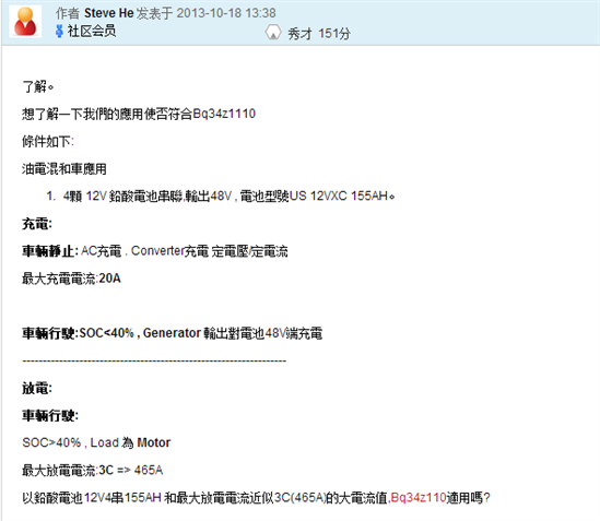 以鉛酸電池12V4串155AH 和最大放電電流近似3C(465A)的大電流值,Bq34z110適用嗎?