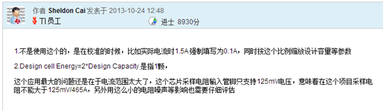 这种应用对于BQ34Z110, 1.容量和电流,功率数值会超过电量计内部的数值长度 2.采样电阻是否能够承受这么大的功率