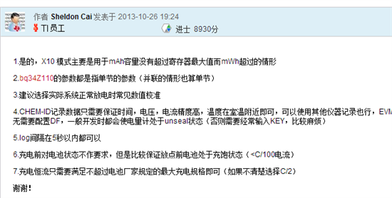 从这个案子中我学到的东西:从这个案子中我根据相关的芯片,在TI的官方网站上找到了相关的资料,在这里(http://www.ti.com.cn/product/cn/ Bq34z110),我找到了相关的User's guide,通过自己的研究发现德州仪器 (TI) Bq34z110是一款非常优秀的电源管理芯片,在具体应用中,