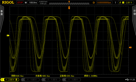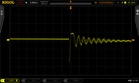 输出电感L1一直“吱吱”的响,此时用万用表测试SW端输出波形非常乱。波形图如下图所示;