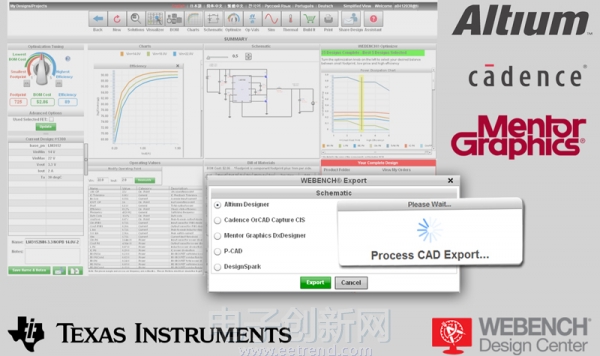 令我感到吃惊的是,WEBENCH竟然可以导出标准格式的电路原理图文件,支持多种电路图设计工具,包括Altium Designer、OrCAD、Mentor等等