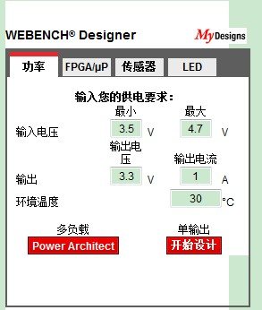 •单电源设计是针对某个型号的power IC进行设计。在设计的过程中对效率、成本、封装三个方面进行优化。这个优化的步骤由WEBENCH工具辅助进行