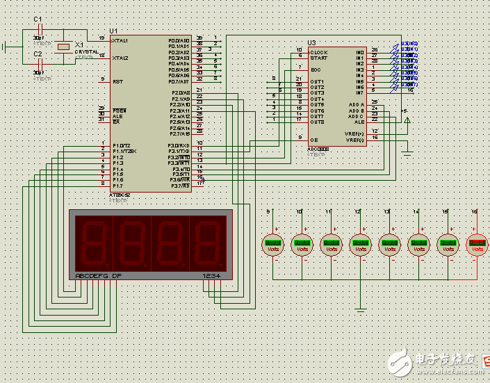 先要将八路模拟信号数值显示电路设计编程,小弟遇到麻烦,望各位能抽点时间帮我看看