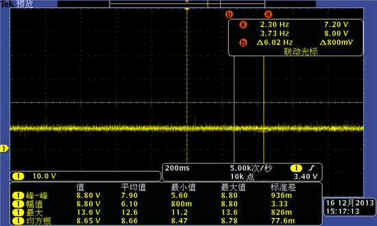 将电容加大测试,还是输出不正常。SW引脚波形如下,有时类似空载下的波形,有时频率很低,还是不正常。