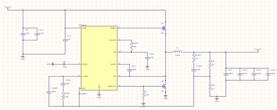 tps40304我先做成了一个小模块做测试,我想让它能输出1.2V@16A或以上的电流,现在板子好了,发现输出的1.2V有噪声,找不到问题,