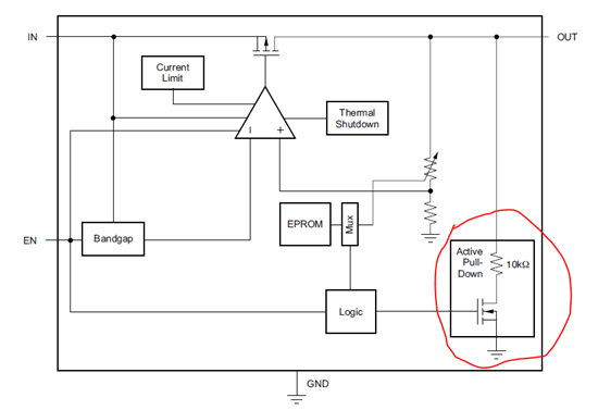 有些LDO含有output discharge功能,如红圈所示