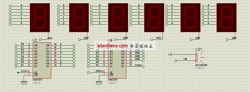分析一下上面的程序,因为我们是把单片机的P0输出口用来控制锁存器的输入D0-D7电平进而控制其输出电平Q0-Q7,U3锁存器和U4锁存器的锁存端分别接在了单片机的P26,P27引脚上,wela=1是让U4锁存端开启,这样U4锁存器的输入与输出是连通的,其D端输入什么,Q端就输出什么电平,P0=0xfe=11111110的作用是让第一个数码管工作,其他的5个不工作,然后执行wela=0;关闭U4的锁存端,使位选的电平保持住了,之后是控制第一个数码管显示8了,要显示8的话则a b c ,d, e, f g h全要点亮,小数点dp不能点亮,再来看看编码是什么a=1 b=1 c=1 d=1 e=1 f=1 g=1 h=0于是P0=01111111B=0x7f,然后dula=0关闭锁存端,这样段选的电平就保持住了,直到,段选电平改变时,才消失。