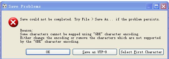 把某个文件做了一点修改,但在保存时却出现如下错误提示: