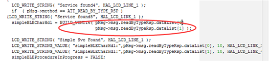 simpleBLECharHdl = BUILD_UINT16( pMsg->msg.readByTypeRsp.dataList[0],