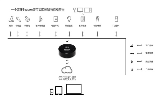 得益于蓝牙的普及,iBeacon的多年实践应用,以及最新蓝牙5的升级,还有即将到来的蓝牙Mesh组网技术,物联网拥有了更快速和更成熟的的运行模式;当蓝牙5 Beacon部署在身边万物的时刻,万物得以互联,万物得以互相感知,更加智能和智慧的家居、办公、生活、商业、消费、娱乐等就能如鱼得水一般拥有了真正表现的余地。