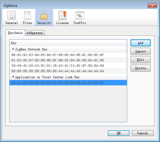 我用的Z-Stack Lighting 1.0.2协议栈,Zigbee Light Linkg开发套件,现在对协议栈还不是很熟悉。想用Ubiqua抓包,但是网络是加密的,需要添加KEY到Ubiqua中,