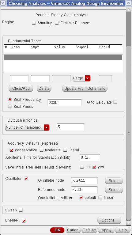 问题2.在上面的振荡器不起振的情况下,利用反相器搭了一个最简单的三阶的振荡器,得到了振荡波形,但是哦不太知道怎么仿相位噪声,只知道是PSS+Pnoise,想请教一下具体怎么设置这两个仿真参数: