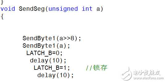 LATCH_B=1; //锁存// ?在这里为什么是先1而不是先0开始呢?74595 是上升沿锁存的。