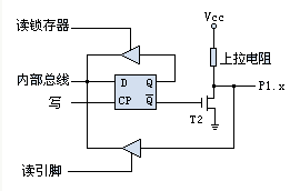 这个你得找管脚结构图看看,先写高电平是写入锁存器中,使下面的场效应管T2截止,因此输出高电平。端口外接的电平为低电平时(按键被按下)。那么管脚的电平就被拉低。读取管脚状态时就会输出低电平。之所以要先写高电平再读管脚,是为了先将T2截止才能正确读出管脚的状态。T2不截止读不出高电平。