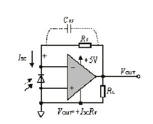 在光电二极管探测电路中,常用上述的电路,将电流转换为电压,通过学习,发现其噪声来源还真不少:1、反馈电阻的热噪声,电阻热噪声的带宽极限为放大器的信号带宽与砖墙滤波器的矫正系数;2、电源噪声,这个就不说了,所以退耦电容就体现作用了;3、光电二极管电流噪声,具体问热噪声,暗电流散粒电流噪声和镜像电流散粒电流噪声的均方根;该电路总的噪声为以上三大种噪声平方和的平方根。运放的输入端电容越大,越不利于系统稳定,由于光电二极管的等效电路有很大的等效电容,因此,系统的不稳定性就存在。为消除该隐患,需要引入一极点,是噪声的怎一曲线在于AOL曲线相交之前变得平稳。也就是运入crf=√cin/(2πrf) r为反馈电阻,f为运放单位增益带宽