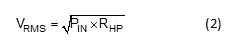 这两个方程式均包含标称耳机阻抗,RHP,它也由耳机厂商指定。为便携式电子设备设计的耳机具有低阻抗(低至16Ω),这是因为耳机上的低压信号将仍能提供足够的功率。对于那些非便携式应用中使用的耳机,比如说专业录音工作室中用到的耳机,它们的阻抗最高有可能达到600Ω。