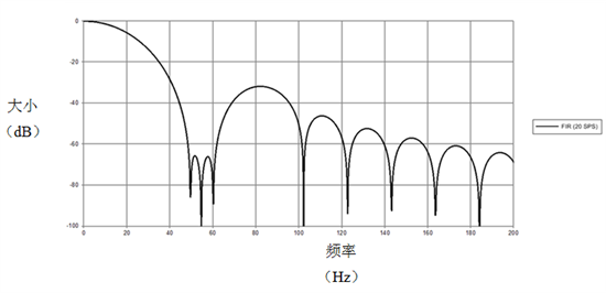 图3:ADS1248数字滤波器的幅度响应,FDR = 20SPS