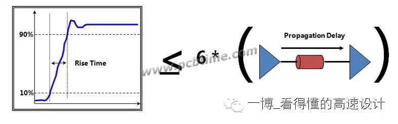 就是这个了,如果上升时间小于六倍的传输延时,我们需要考虑传输线效应,称之为高速。