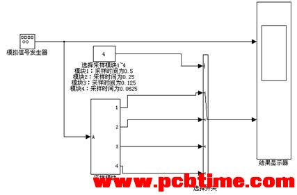 运行仿真电路时,由“模拟信号发生器”模块产生各种模拟输入信号,通过“选择采样函数1~4”模块选定采样频率,结果在“结果显示”模块显示。