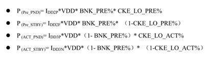 其中WR%和RD%指写/读操作在ACT周期中占的比重,Vout和Iout指DQ管脚的输出电压和电流,N指芯片上DQ和DQS的数目。
