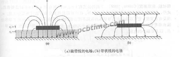 很明显可以看到微带线上下两部分的电场分布不一样,我的理解是电场的建立速度就是电场的传播速度,那传播速度的公式v=光速c除与根号下ε(介电常数),很明显空气和介质的介电常数不一样,所以他们的建立速度应该是不一样的啊。而且空气中传播得快,那电场在在空气中的分量会早于介质中的,那电场就在传播方向上就存在了分量。