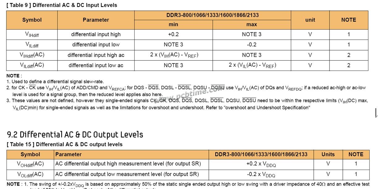 求助一下,对于DDR3地址线差分时钟差模电压的peak to peak的数值范围是多少?谢谢,从下面的参数中哪里可以得出