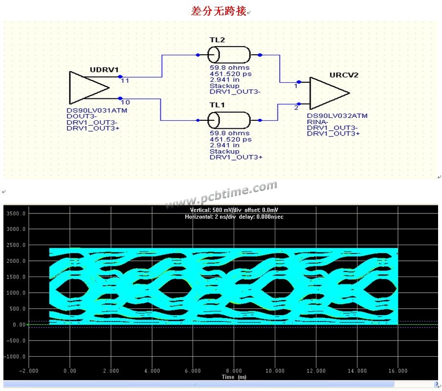 对比差分线上有无跨接匹配100欧姆对信号质量的影响