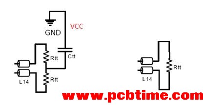 2种端接都见过,第2种比较常见也比较简单,直接100欧姆电阻即可。