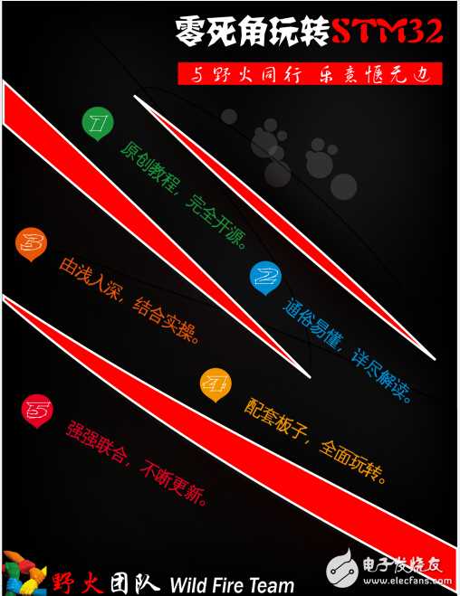 想学习STM32的朋友必不可少的资料。共享给大家. 《零死角玩转 STM32》系列教程由初级篇、中级篇、高级篇、系统篇、 四个部分组成,根据野火 STM32开发板旧版教程升级而来,且经过重新深入编 写,重新排版,更适合初学者,步步为营,从入门到精通,从裸奔到系统,让 您零死角玩转STM32。M3的世界,与野火同行,乐意惬无边。 另外,野火团队历时一年精心打造的《STM32 库开发实战指南》将于今 年10月份由机械工业出版社出版,该书的排版更适于纸质书本阅读以及更有利 于查阅资料。内容上会给你带来更多的惊喜。是一本学习STM32必备的工具 书。敬请期待!更多详情:http://www.elecfans.com/soft/33/2015/20150209364497.html