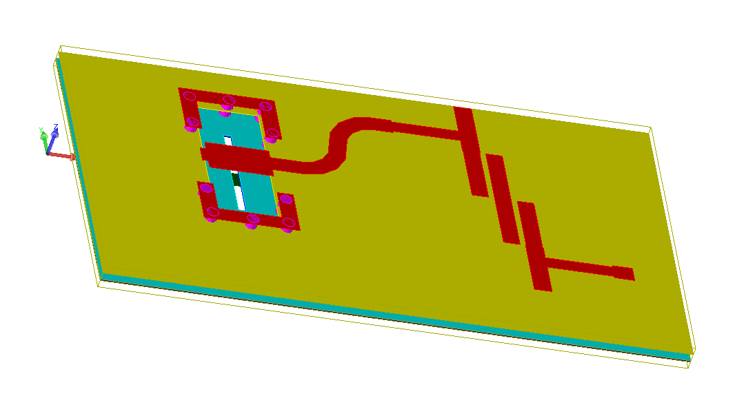 I'm simulating a 3-layer board (energy is coupled by a 'waveguide' from layer 1 to 3) followed by a coupled line bandpass filter.