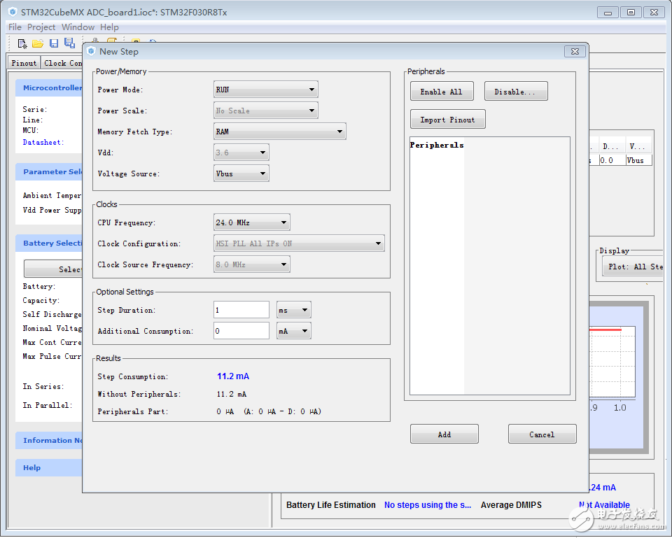 在做STM32F030R8的功耗计算的时候外设加不进去,选择别的型号就可以加入外设是怎么回事?