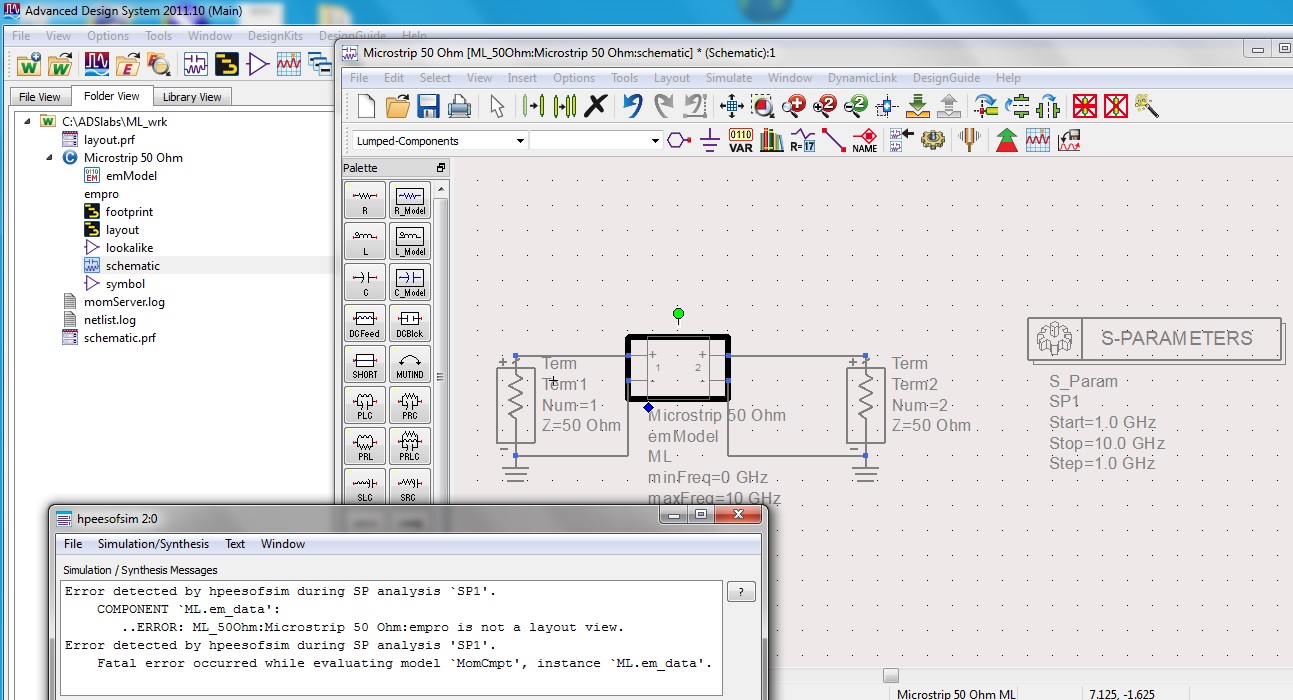 I added two terminals to simulate in ADS but it had errors: " ..ERROR: ML2:ML2:empro is not a layout view. " I wonder why this is not a layout view.