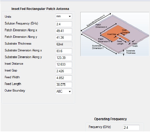 Could anyone give the formula to calculate the feed width and length of an inset fed microstrip patch antenna?