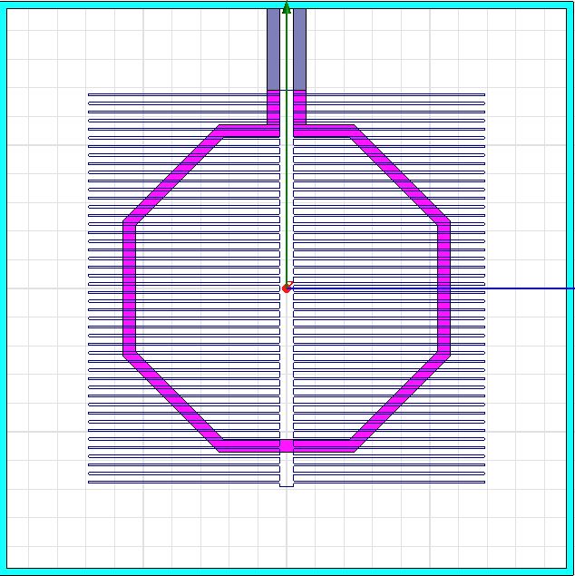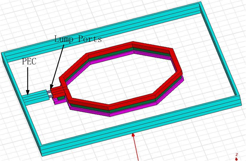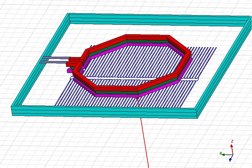 thanks for reply. This is my work, I use MA metal(red one) and the E1 metal(pink one) for the inductor, the vias is the green ones. The cyan one is the guard ring use the MA and E1 metal. Under the inductor, it's a shield using M1. The problem is when I use the lump port (p1&p2), just as the grey ones, which connect the inductor and the guard ring, it always have a mistake. Do you know how to corrected it?
