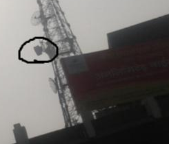 simple Answer: PATCH ANTENNA with array... using high power .... those antenna used superstate for high directivity and they send the carrier frequency....some time Operators used high pole antenna for omni directional radiation.
